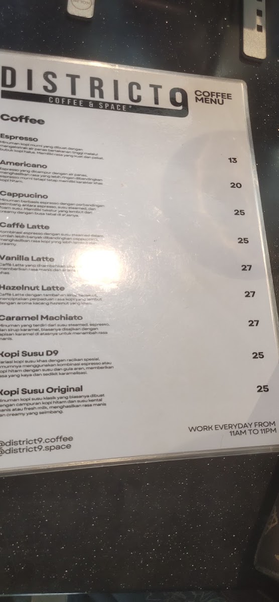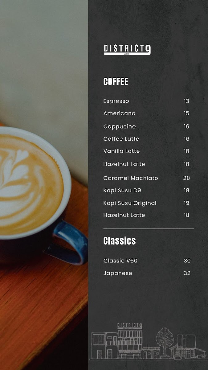 The menu at District 9 is a delightful fusion of expertly brewed coffee and simple yet delectable snacks. Each cup of coffee reflects a commitment to quality, prepared by friendly and communicative baristas who are eager to share their passion.